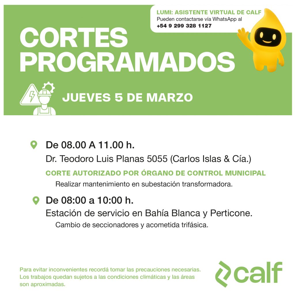 Obras para este jueves